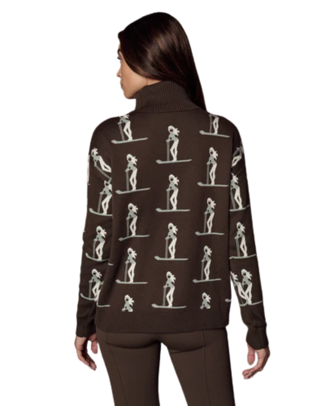 Après ski style has a new favorite sweater. The Nala channels retro ski style, with a turtleneck sweater silhouette that guarantees warmth and coziness all day long. Knit from an ultra-soft, itch-free yarn and adorned with skiers from top to bottom.