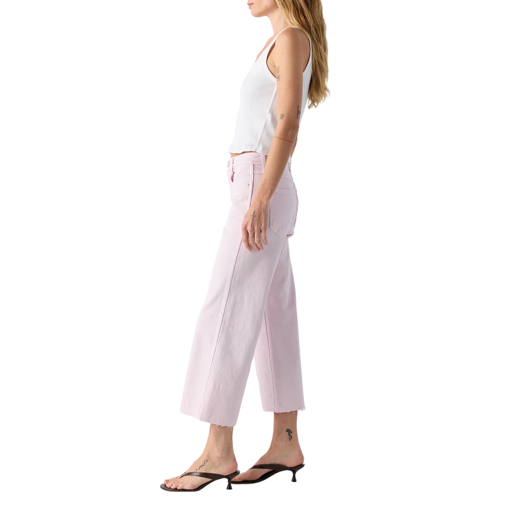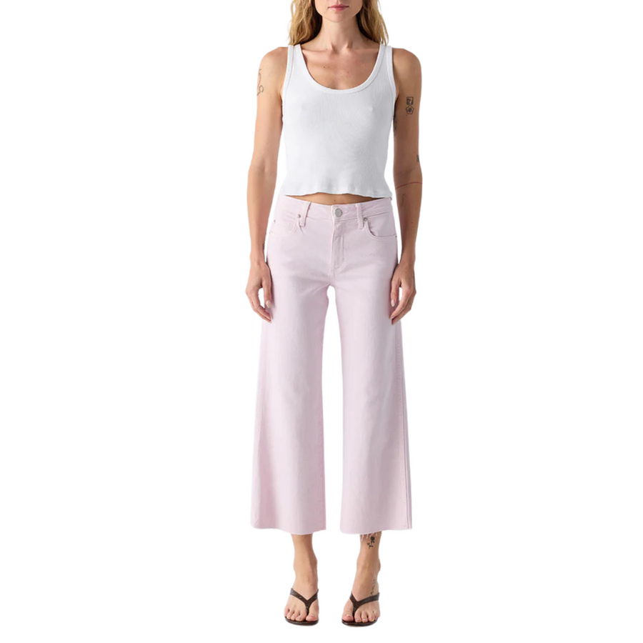 A mid rise, relaxed fit, wide leg jean - with a cropped hem to show off your shoes. Made in premium vintage stretch denim, they will be your new versatile go-to. Style with a tee and flats for day, or dress them up with heels for nights out. Raw, frayed hem. Zip fly.