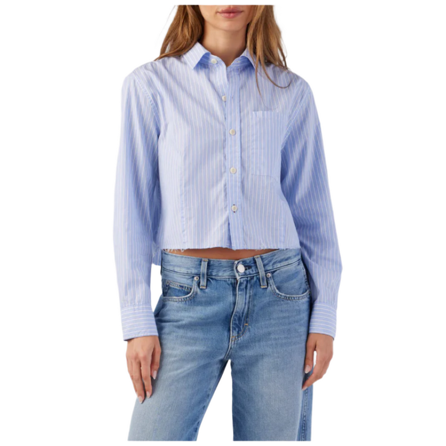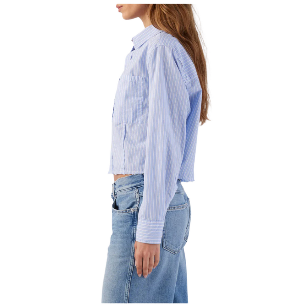 The cropped button down with a playful side. This breezy spin on a classic features a fresh blue multi-stripe and a relaxed fit that's polished without trying too hard. Crafted to give you that perfect balance of structure and ease.