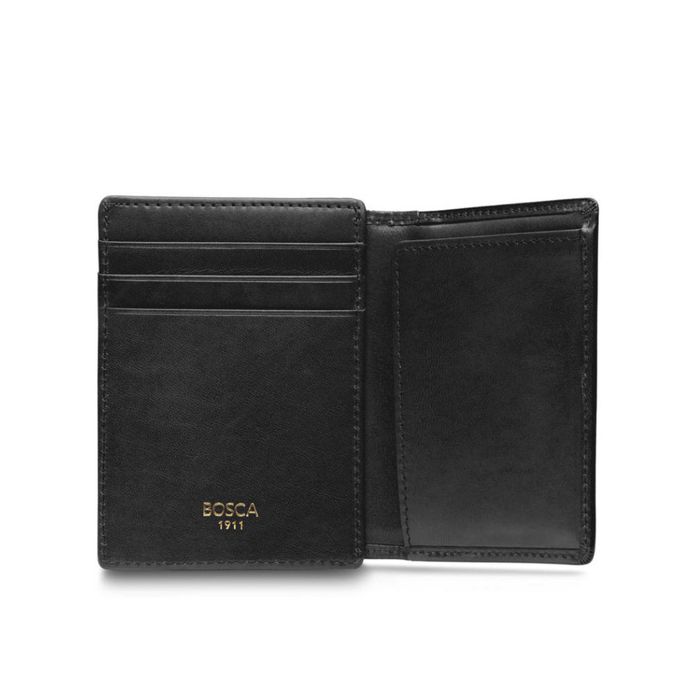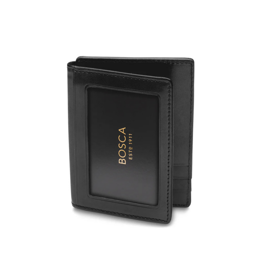 This men’s bifold wallet has been specifically designed for carrying in a front pants pocket, with a slim and simple design that fits comfortably and discreetly. A clear ID window secures credentials and makes for an easy display, while three card slots and back clip secure the rest of your cards and funds.