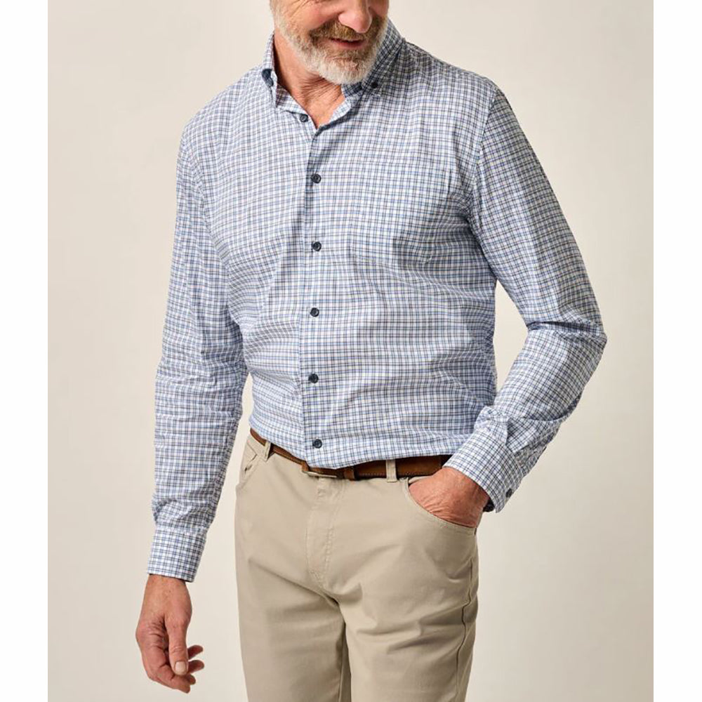 This button-up is made with a beautiful cotton and nylon performance blend that stretches and wicks moisture and features a hidden button-down collar. Finished with goosefoot and shanked buttons and our signature Tweener Button® which is hidden between the 2nd and 3rd button to give you the perfect amount of coverage, this is quite simply one of the best shirts you'll own.