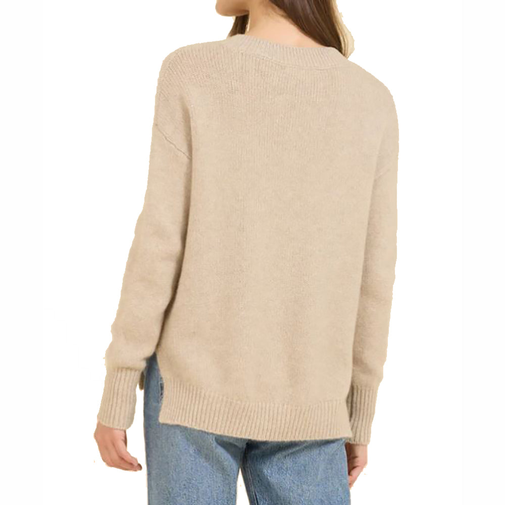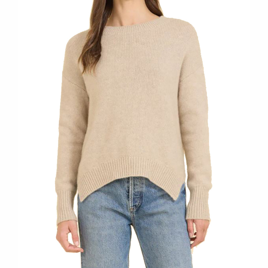 A classic cashmere pullover in a heavier weight, with a wider open crewneck, side split at hem with a longer back length, and branded whip-stitching on left cuff.
