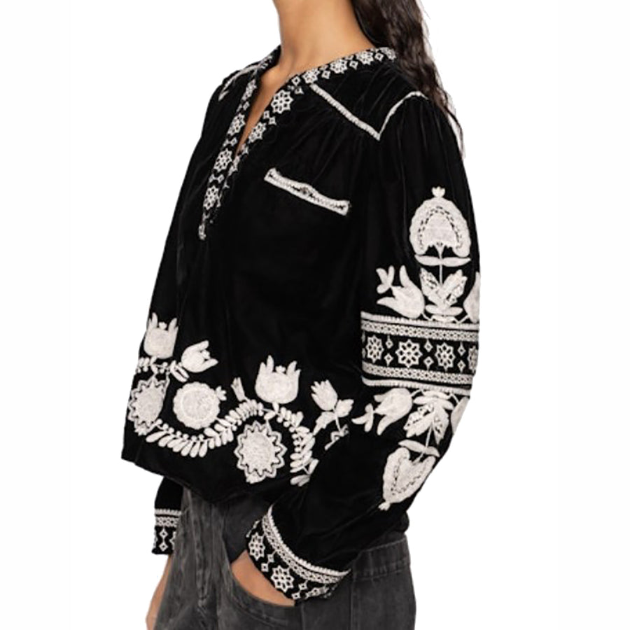 Irene Embroidered Velvet Top
