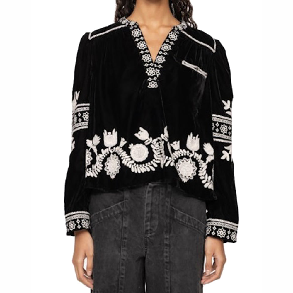 Long Sleeve Embroidered Velvet Top