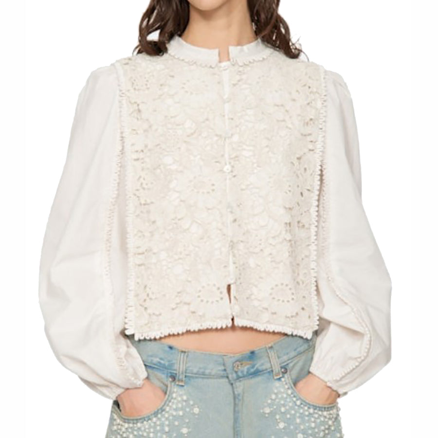 The Sabine embroidered top features lace applique embroidery throughout the body and long puff sleeves.