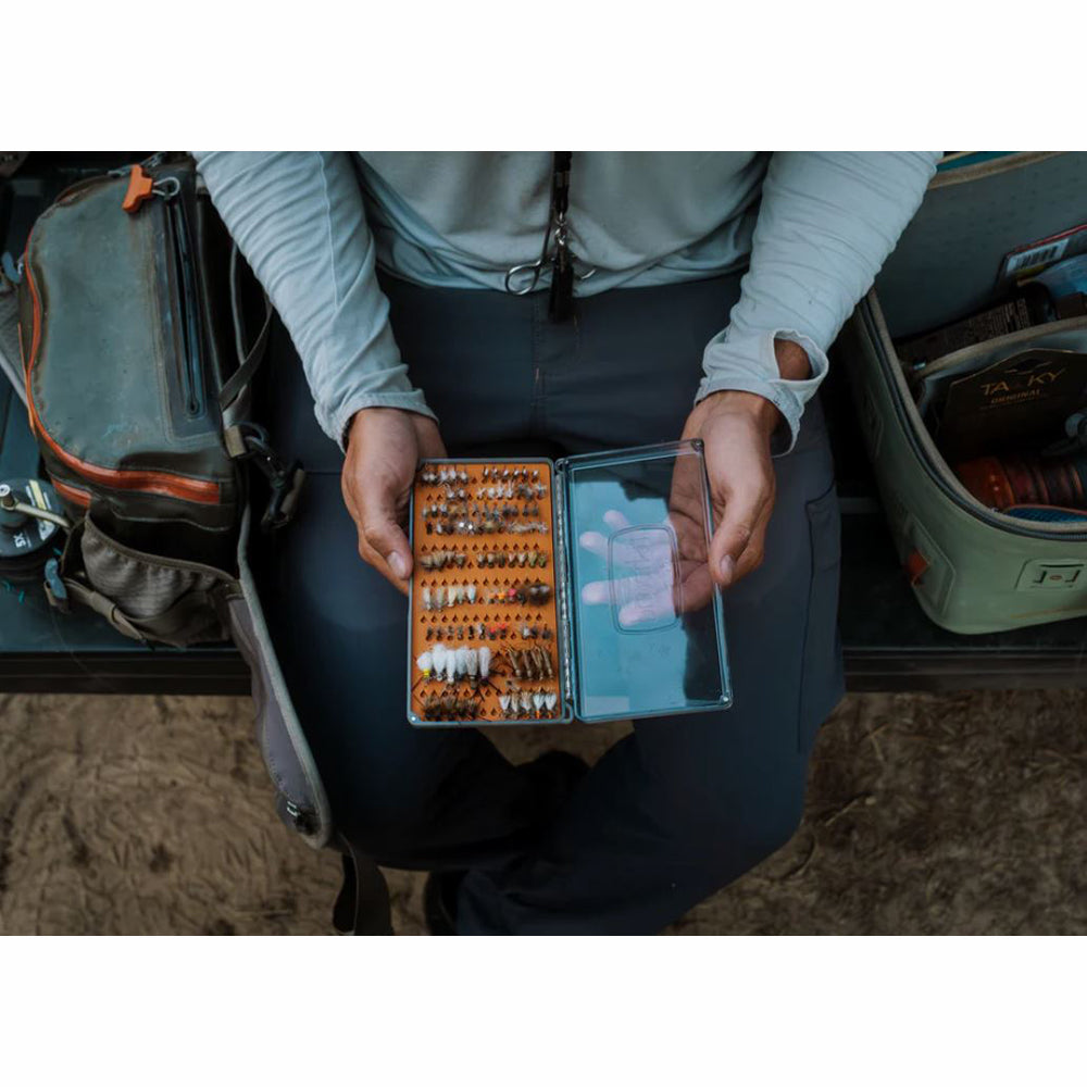 The Original Box delivers unmatched organization, visibility, and reliability for your fly storage. Our signature silicone anchoring pad keeps flies secure, won’t absorb water, withstands extreme temperatures, and resists damage from sharp hook points. Crafted from durable, shatter-resistant recycled polycarbonate, it’s built to protect your flies while helping to protect the planet.