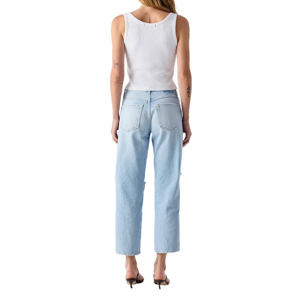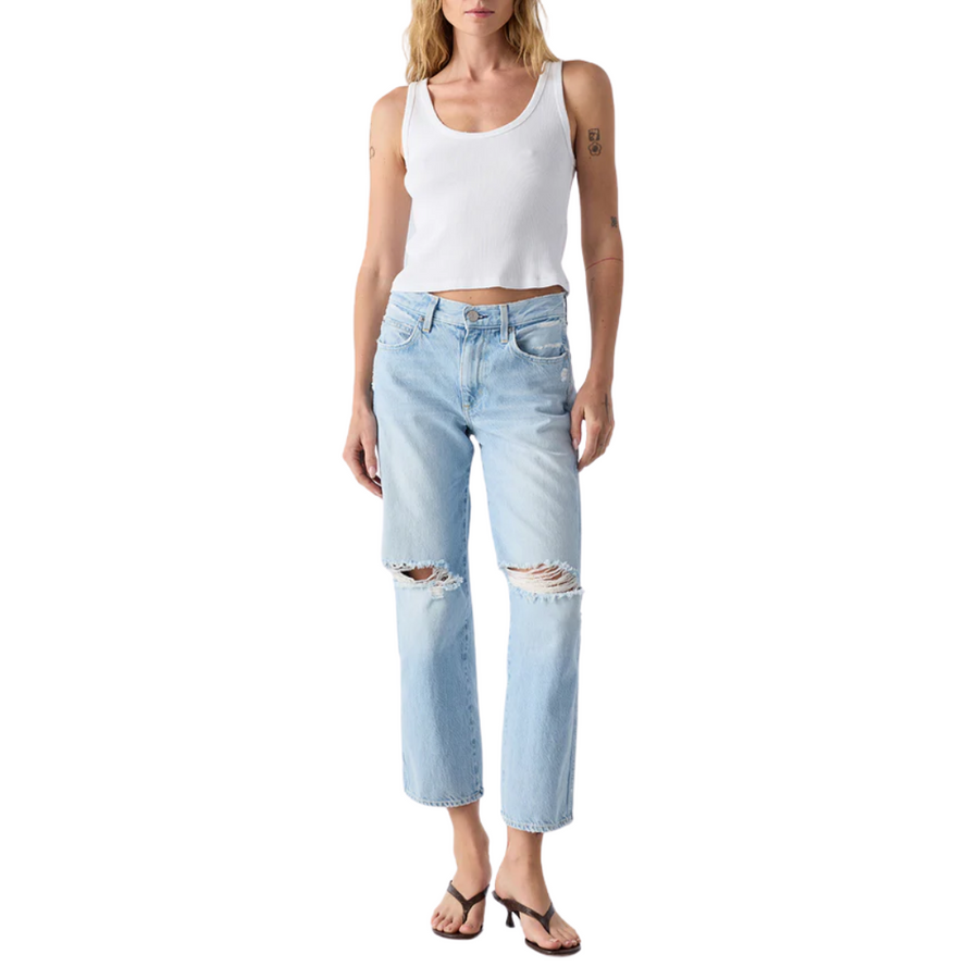 This cropped, wide straight leg is our easiest fit yet. With a mid rise, this pair is meant to sit low on the hips for a relaxed look. Zip fly.