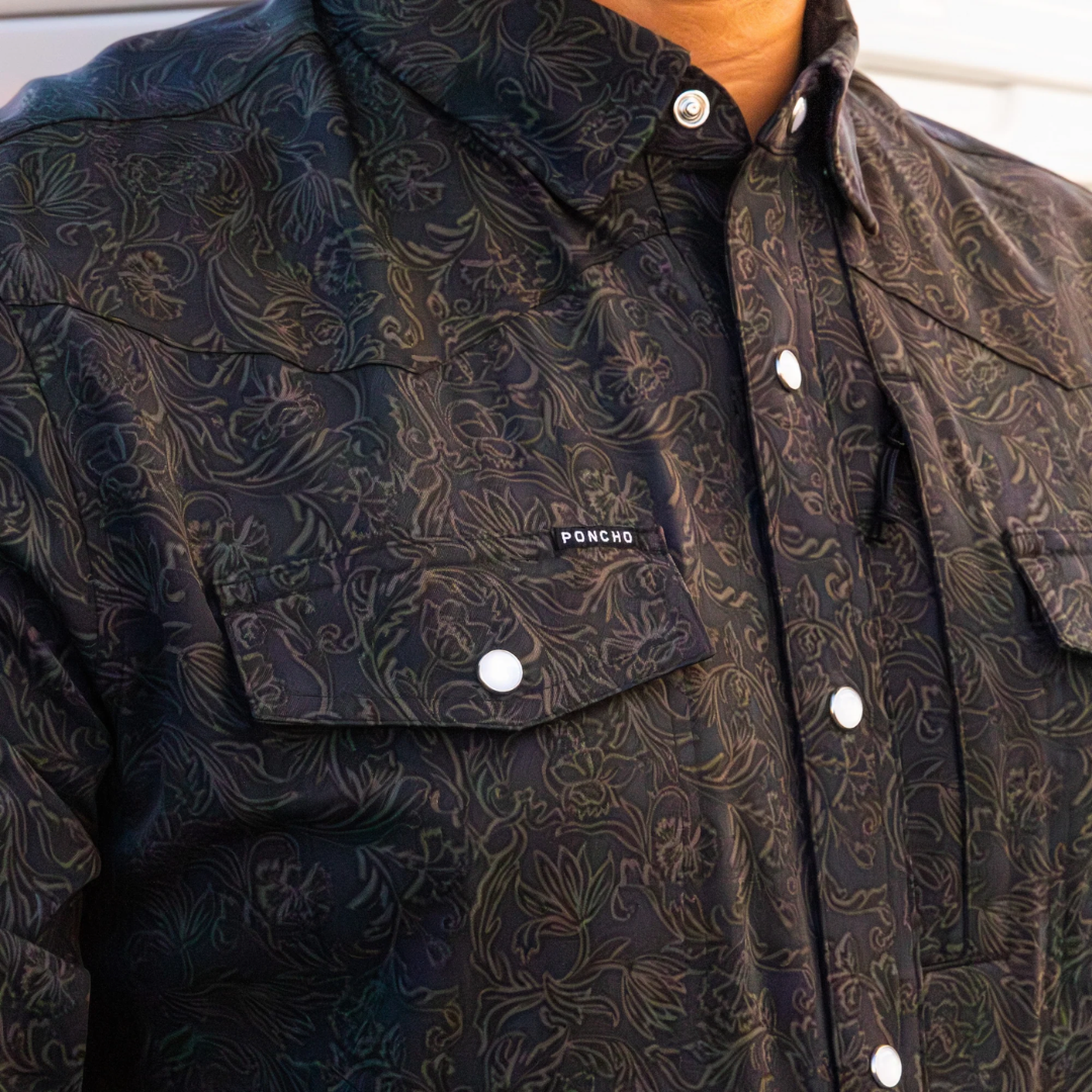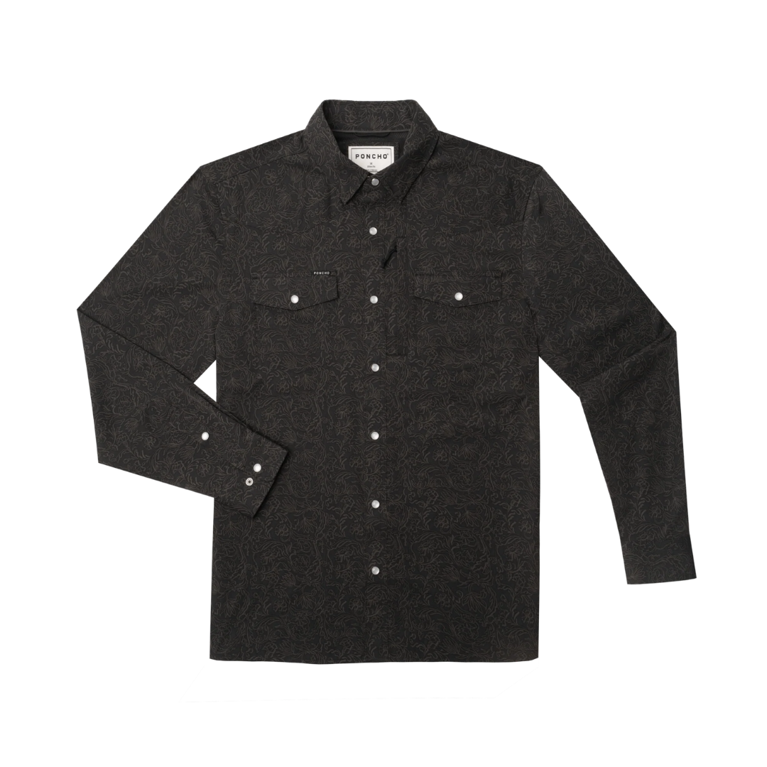 This classic western shirt is made with the same breathable, lightweight, and quick-drying fabric you love from Poncho, so you’ll be comfortable until the cows come home. It’s got built-in sun-protection and tons of functional details to help while you’re working up a sweat. Plus, we’ve added pearl snaps and western styling, so you’ll be fit for any frontier.
