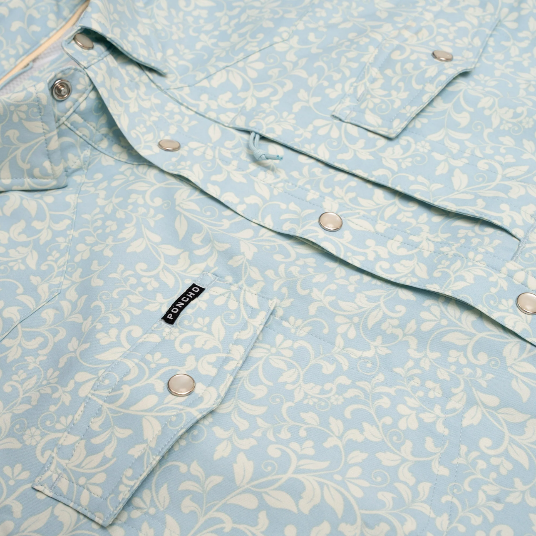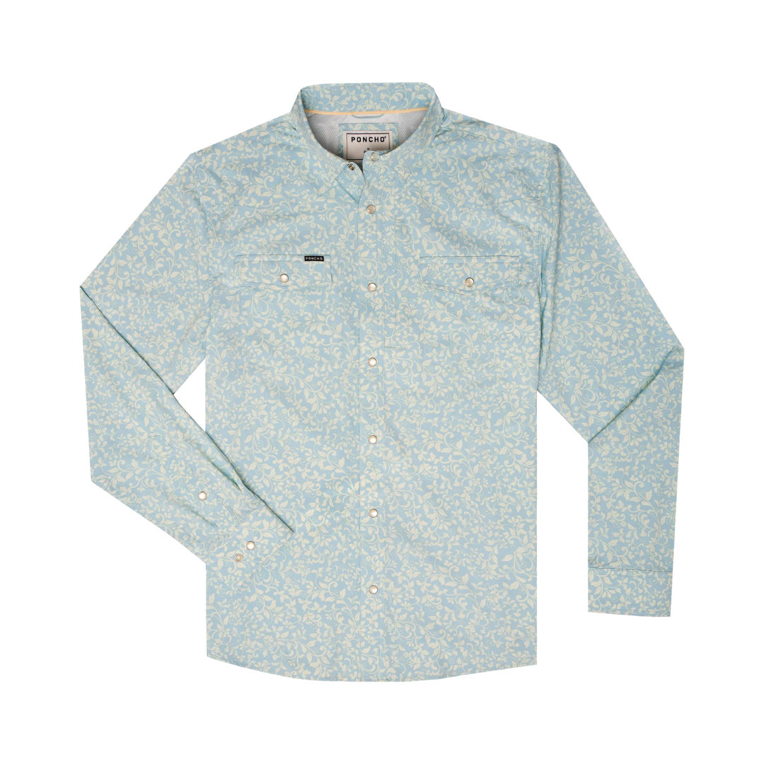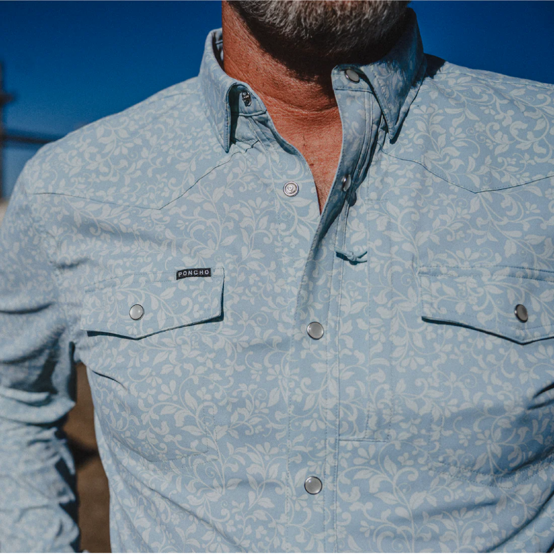 Poncho's classic western shirts are made with the same breathable, lightweight, and quick-drying fabric you love, so you’ll be comfortable until the cows come home. It’s got built-in sun-protection and tons of functional details to help while you’re working up a sweat. Plus, they've added pearl snaps and western styling, so you’ll be fit for any frontier.