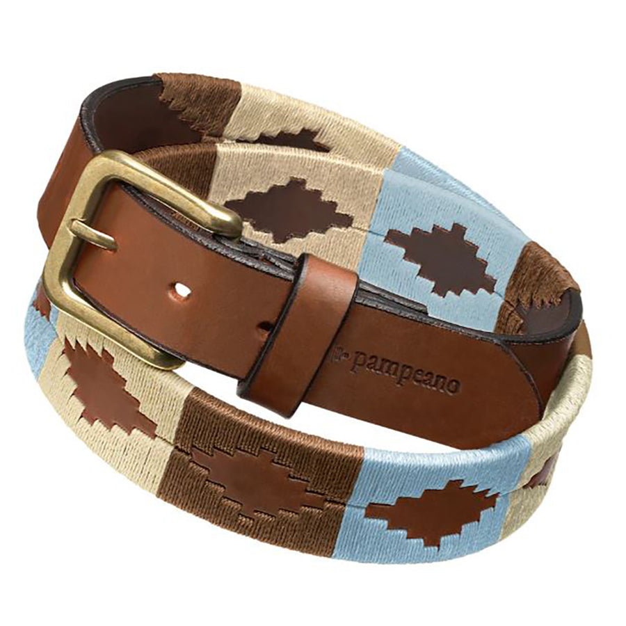 Embrace the spirit of adventure with the Desierto, a new premium polo-inspired pampeano belt. Desierto, as you may have guessed, translates as 'desert' in English, and this striking polo belt is inspired by the vibrant and unforgettable scenes of the deserts of Argentina. The bright blue reflects the soaring skies above, while the cream and dark brown wax dipped saddlery thread against the rich hazelnut colored leather invokes the textured sands beneath your feet.