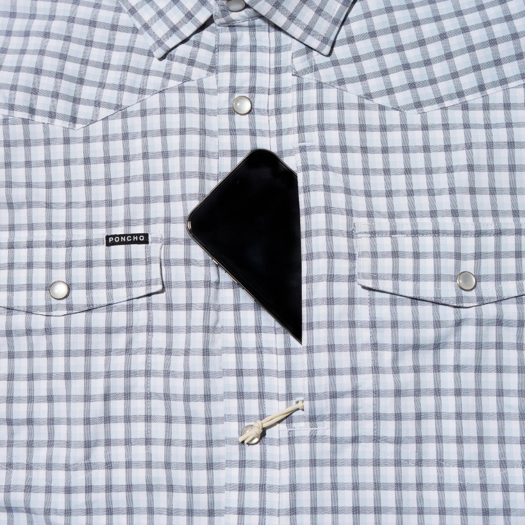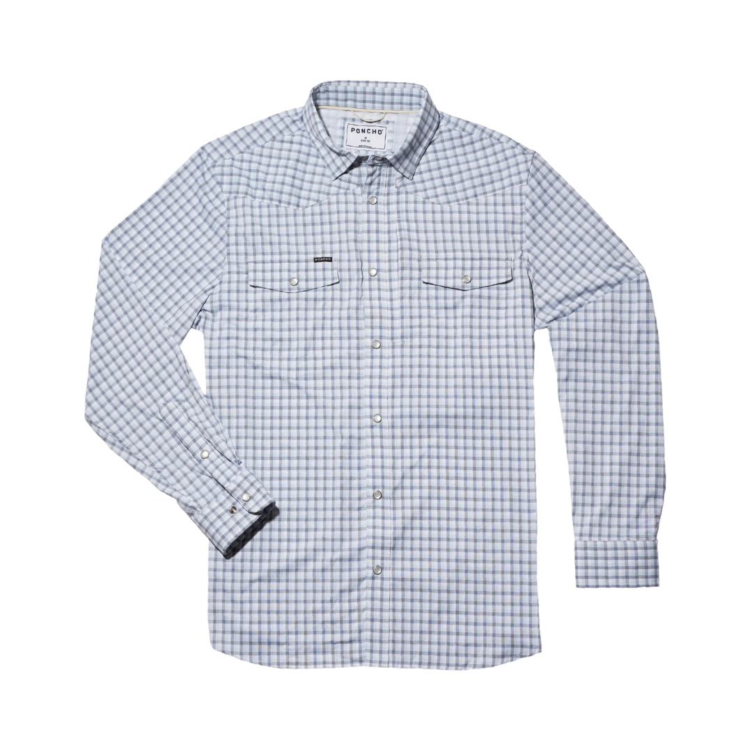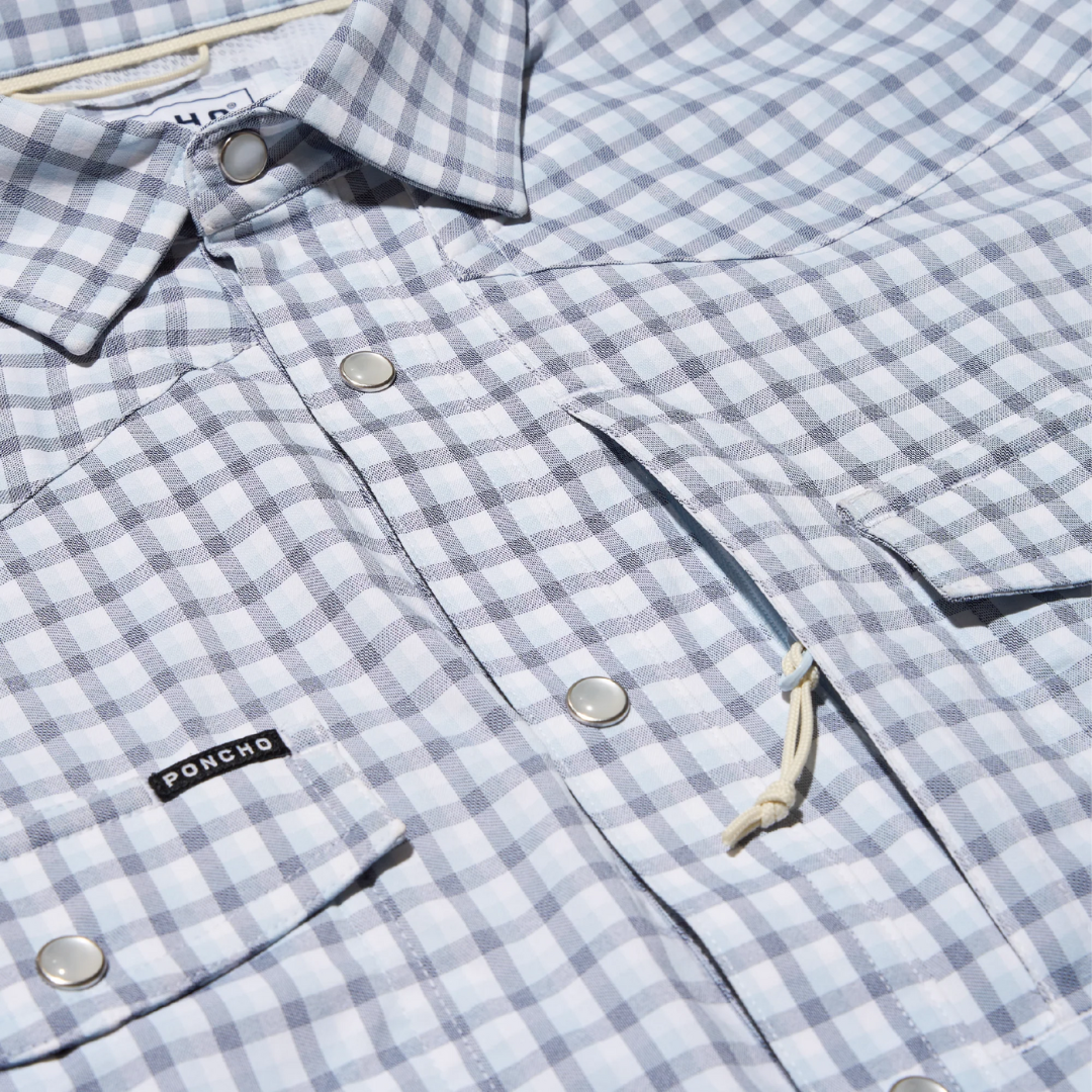 The same breathable, lightweight, and quick-drying fabric you love from Poncho. Now with pearl snaps. Performance meets western.