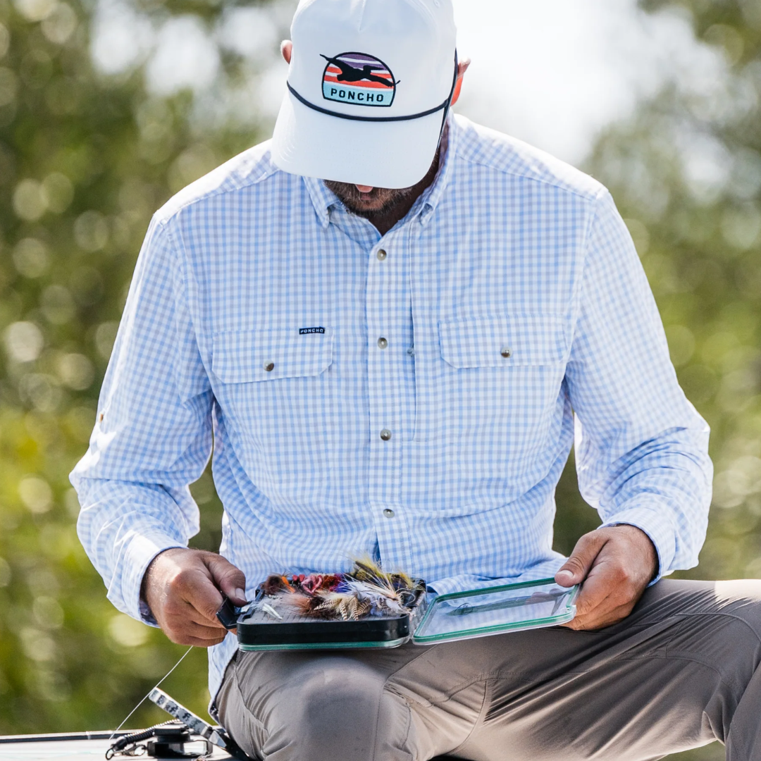 Poncho's proprietary fabric is breathable, lightweight, quick-drying, and provides built-in sun-protection so you can stay out all day. It’s got built-in stretch to keep you moving, and tons of thoughtful details born from our time spent outdoors — like a hidden zippered pocket, sunglasses holder, and more. It’s the shirt we wanted to wear, so it’s loaded with everything you need, and nothing you don’t.