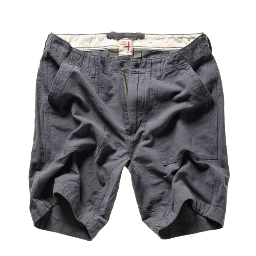 The latest spring version of our classic utility pant (sans legs) derived from the U.S. Military’s '50s + '60s variants. A fresh take instantly happens through the fabric content of 25% linen, woven with a coarser finish. The result is a bit of a canvas sackcloth vibe while exhibiting tremendous breathability and drape. Faithfully executed details persist, from the seamless waistband to the reinforcement tape extending under belt loops, to the interior pocket facings rolled 1/16th of an inch from the opening edge, to the added fullness and shape of the applied rear pockets…all lending to a rigorously considered + authentic build quality, the best of its kind.