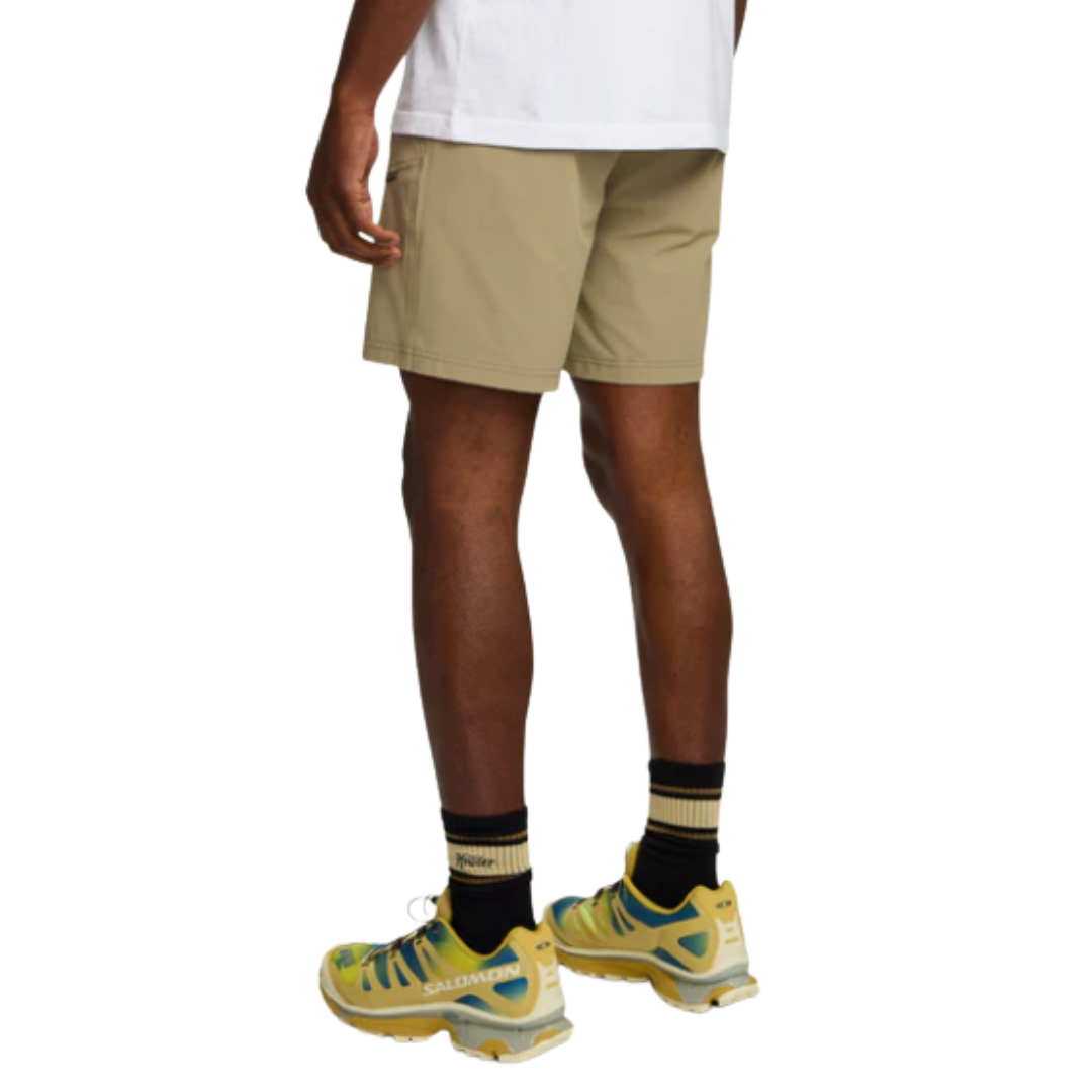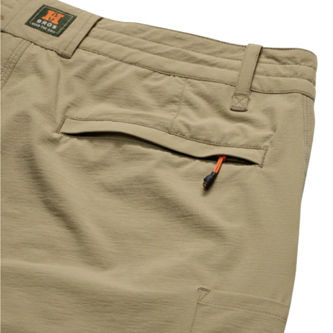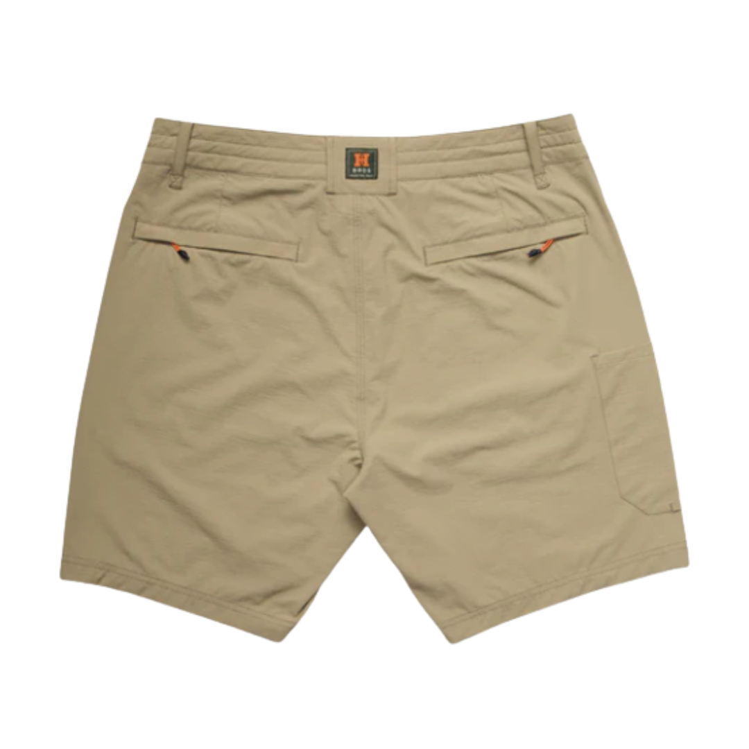 The Shoalwater Tech Pants are so popular Howler Bros. had to create shorts using the same sweet features and technology! Like their long-legged brethren, these shorts are designed to take you to places wet and dry. They constructed them with the same 4-way stretch nylon/spandex blend, drawcord waistband and bungee closure, but added an extra zipper pocket at the side seam and front to hold all the good stuff.