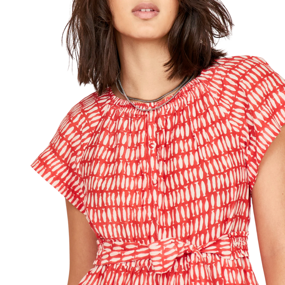 • Tiered ankle length dress with ruched elastic neckline