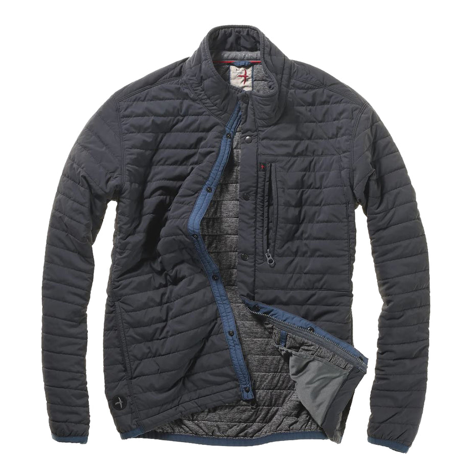 Akin to wearing a skinny sleeping bag, this is quite possibly our most versatile jacket. Deploying a combination of quick closure snaps with a 2-way zipper, it’s like wearing a technical cardigan with just a few snaps in use. A super easy go-anywhere throw-on with a double-layer stand-up collar. Equally adept to layer under a larger parka or waterproof shell for superior warmth.
