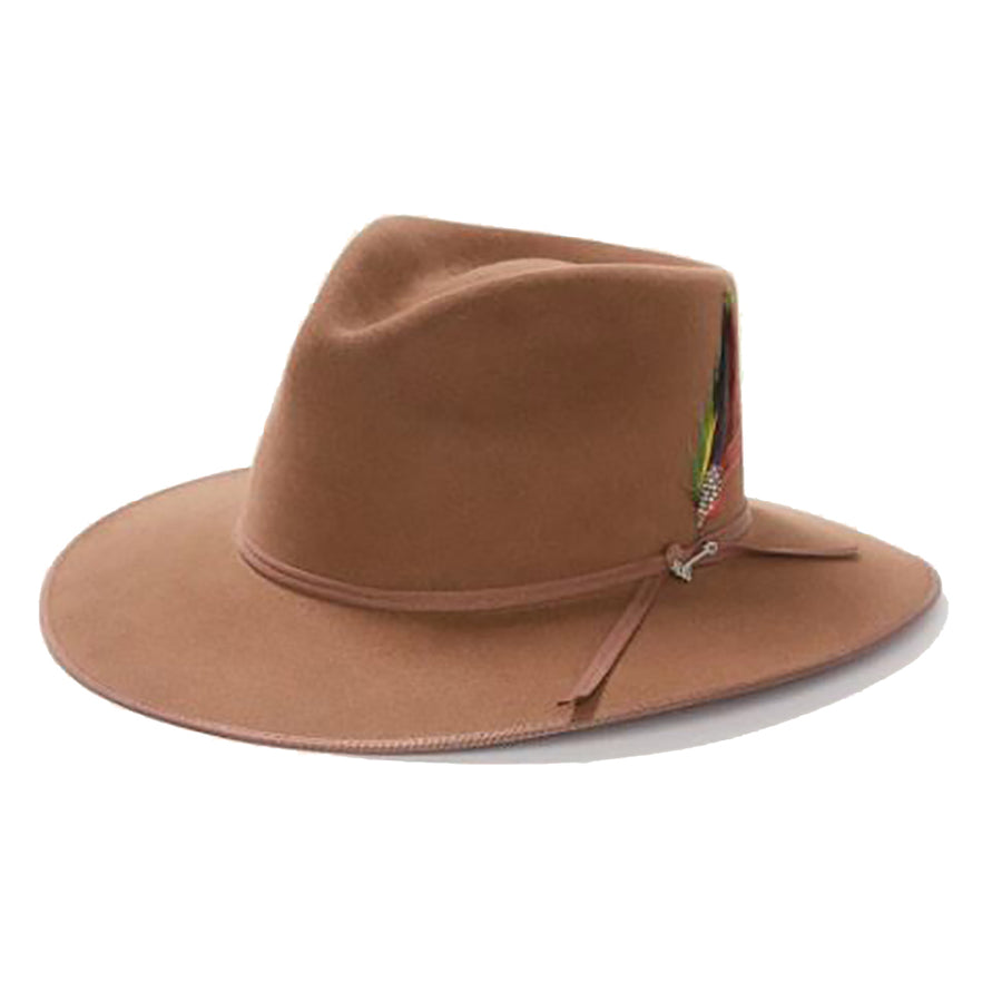 The Dune 5X Outdoor Hat is constructed of 5X fur felt and features a pinchfront crown, interior comfort sweatband, bound edge brim and a 2-ply self matching hat band with feather accent.