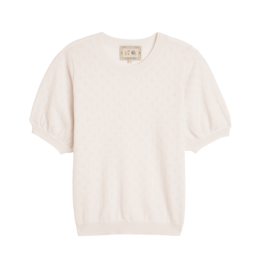 Textured Short Sleeve Cashmere Sweater With Lurex