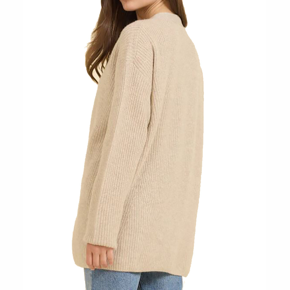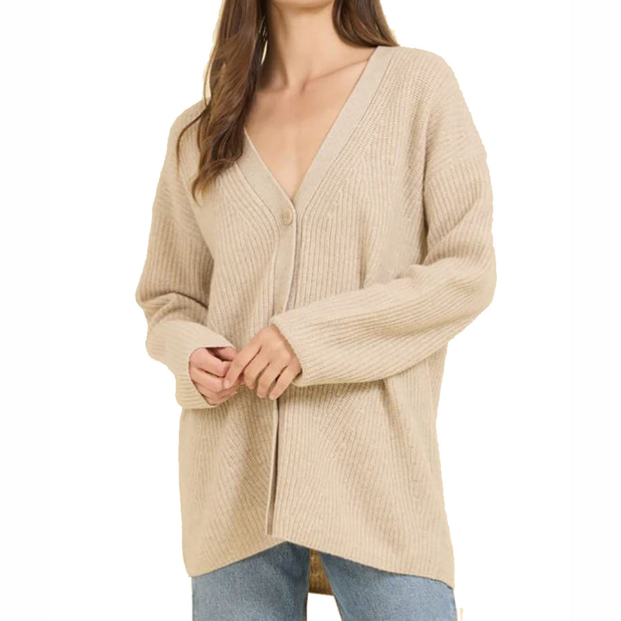 A classic cashmere fisherman-rib cardigan with an oversized fit for comfort, with a dropped neck with large logo buttons. Featuring flattering rib fashioning details on body.