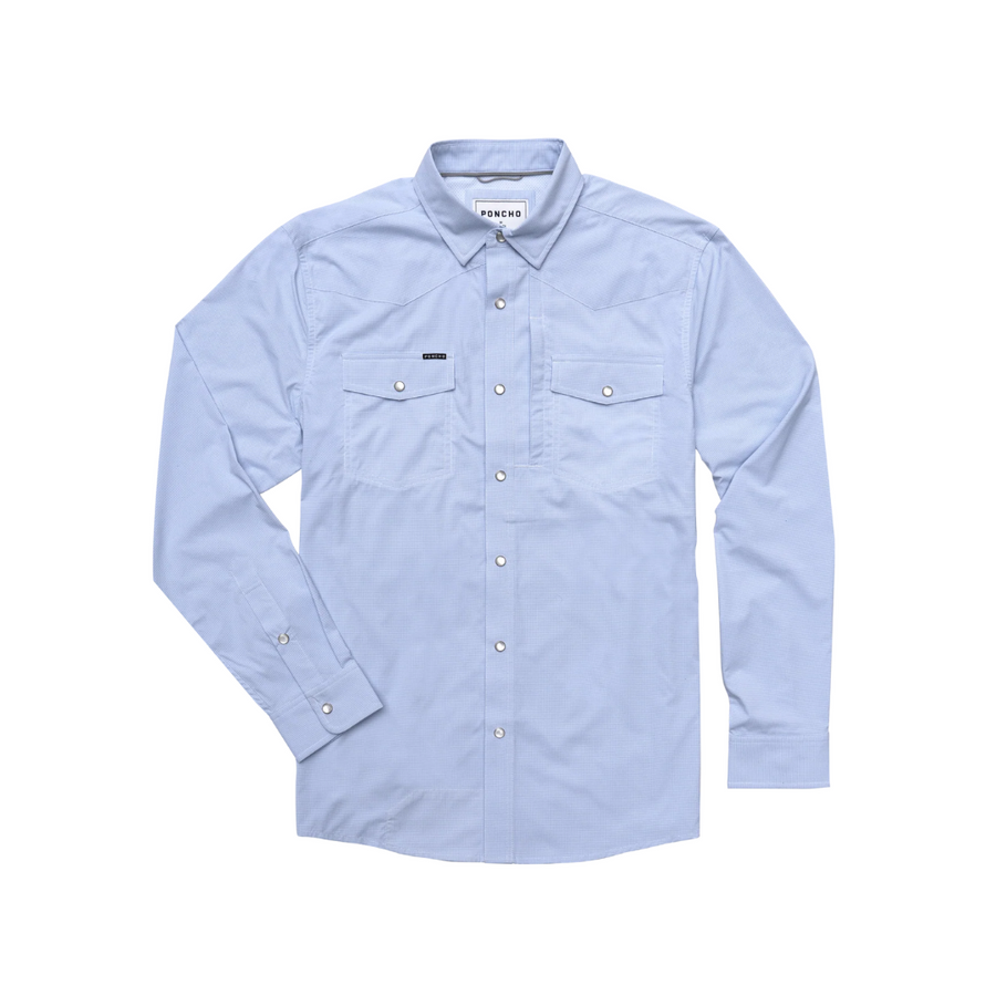 Our classic western shirts are made with the same breathable, lightweight, and quick-drying fabric you love from Poncho, so you’ll be comfortable until the cows come home. It’s got built-in sun-protection and tons of functional details to help while you’re working up a sweat. Plus, we’ve added pearl snaps and western styling, so you’ll be fit for any frontier.