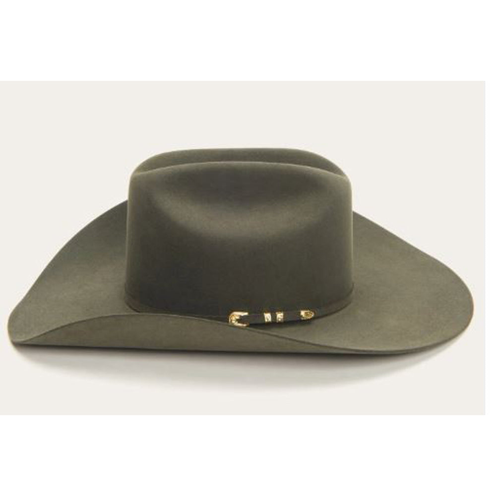 Stand out from the crowd in the Stetson Sage Munford hat. The classic and refined style is a textured staple, made of genuine 6x fur felt material. The matching hatband is accented by the focal point of this hat, the gold and silver buckle set dotted by green stones that set the entire look apart. Add this unparalleled and timeless beauty to your collection for a true western look.